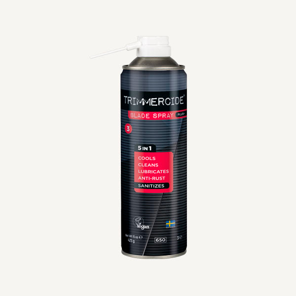 - Trimmercide® Blade Spray Plus+ 5 in 1 – Cools, Sanitizes, Lubricates, Cleans and Anti – Rust