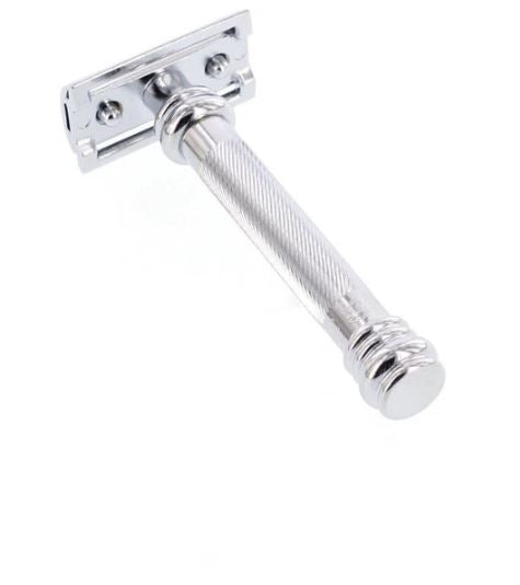 The 38C is a serious safety razor. It’s a 2-piece design, with a long heavy handle, with deep knurling on the handle for a secure grip. 2-piece razors are much faster when it comes to blade changing than 3-piece razors. Since it’s quite heavy, this model is one of the most aggressive safety razors with closed comb head Merkur offers. We recommend this razor the experienced users who are looking for a very effective cutter.