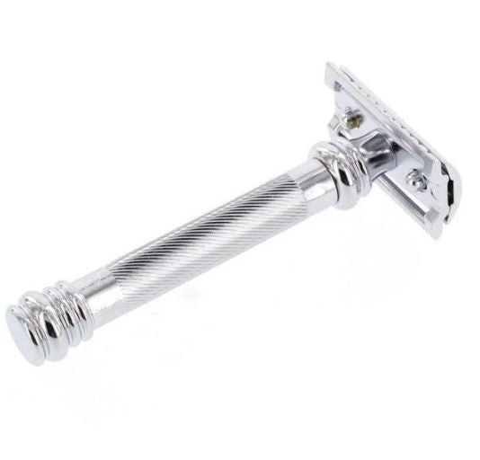 Merkur offers a wide range of safety razors including open and closed comb heads, slanted heads, classical designs, modern designs, 2 or 3-piece models, adjustable razors, long or short handles, aggressive or mild models. You name it, Merkur has it.