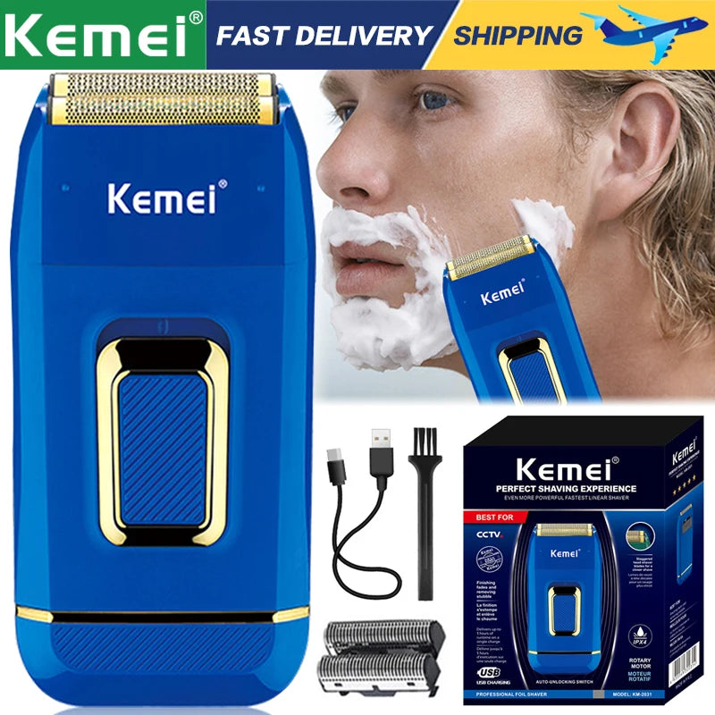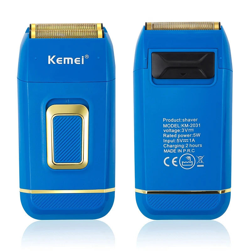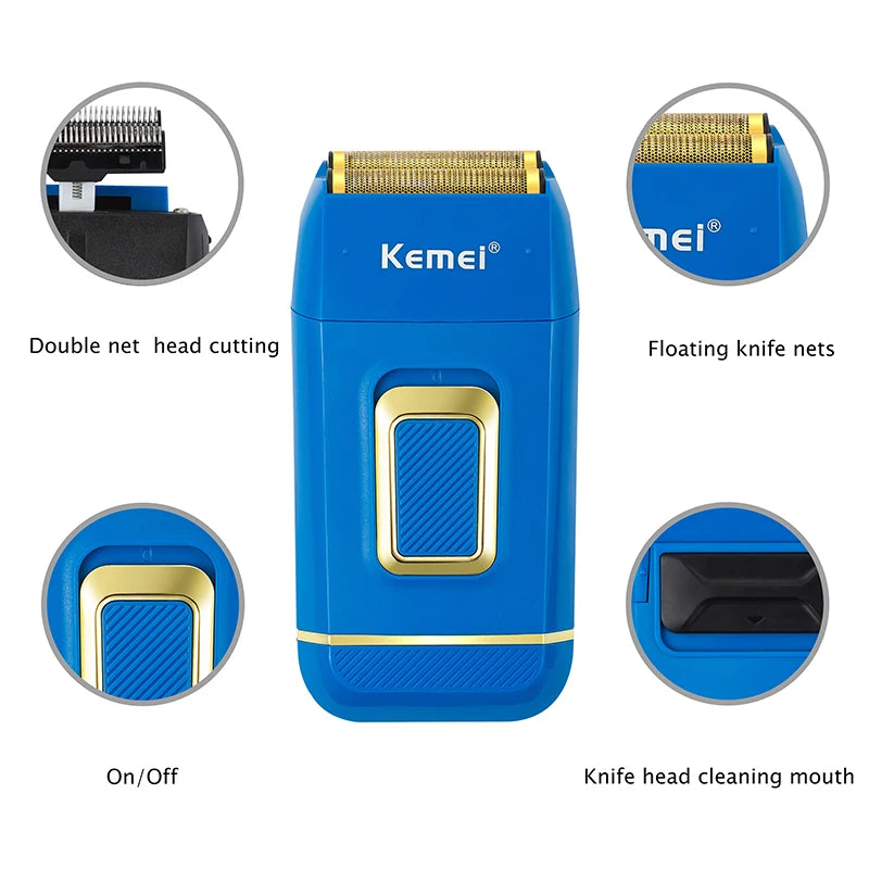 Kemei Professional Blue Electric Razor Bald Head Foil Shaver Cordless Rechargeable Close Shaving Precision Cutting Waterproof
