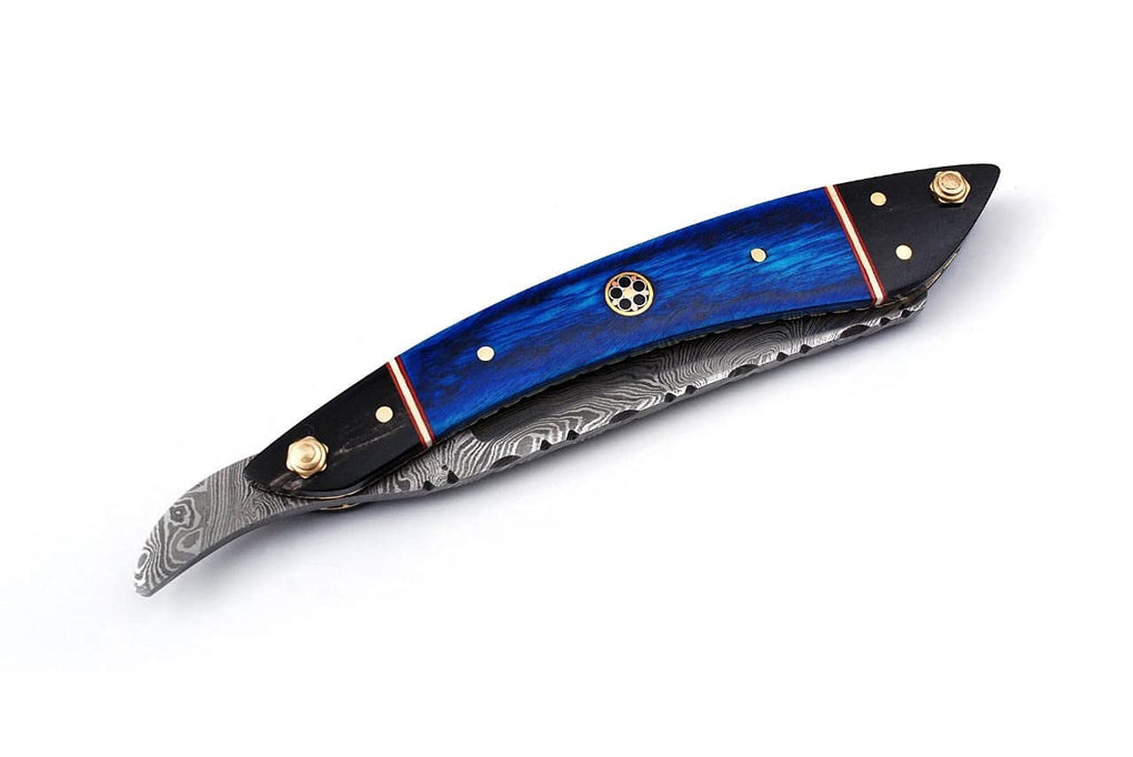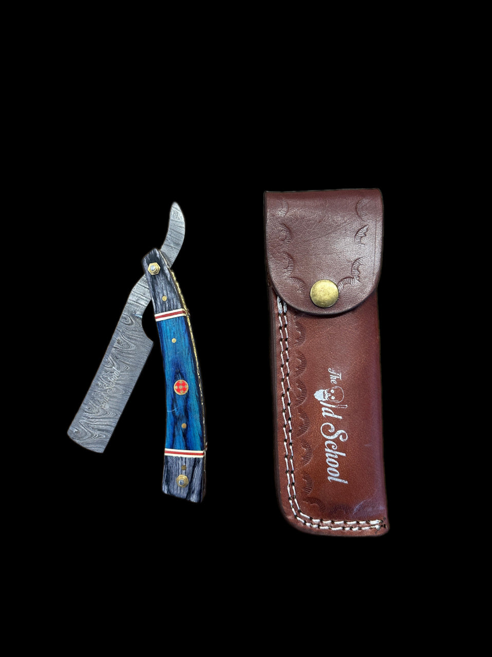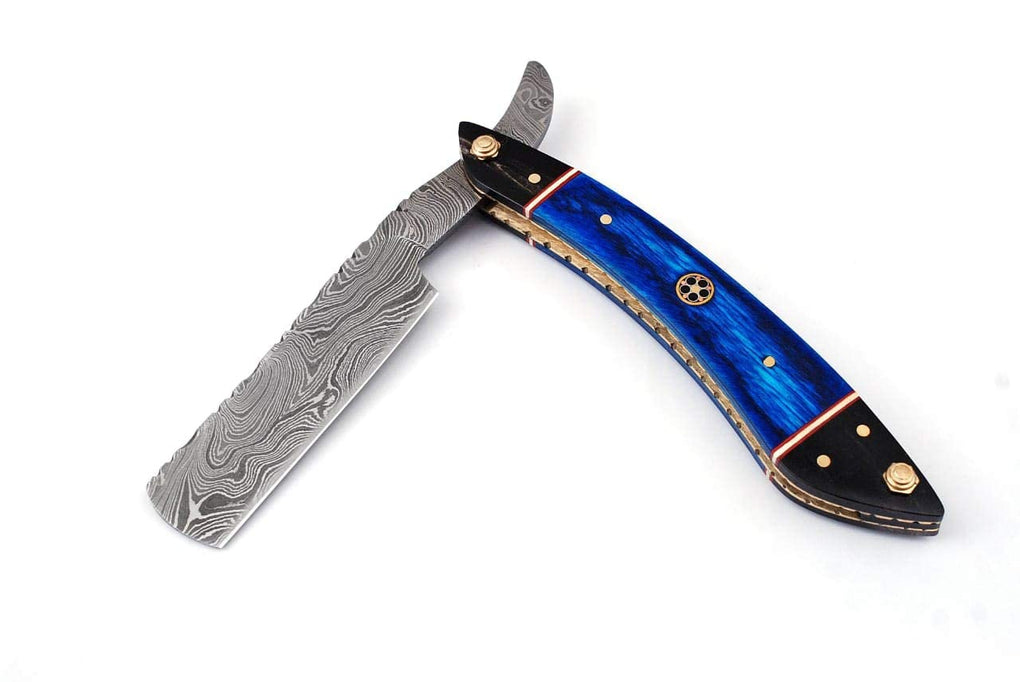 Blue Damascus Steel Fixed Blade Straight Razor - Barber Approved