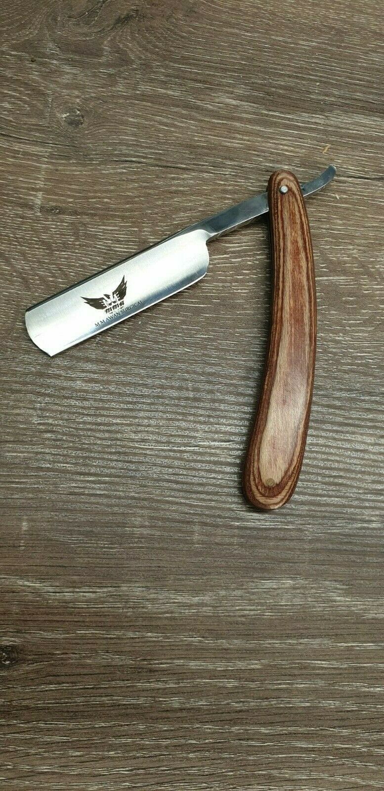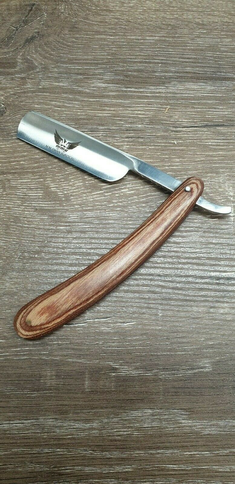 Fixed Blade stainless steel cutthroat razor with wooden handle