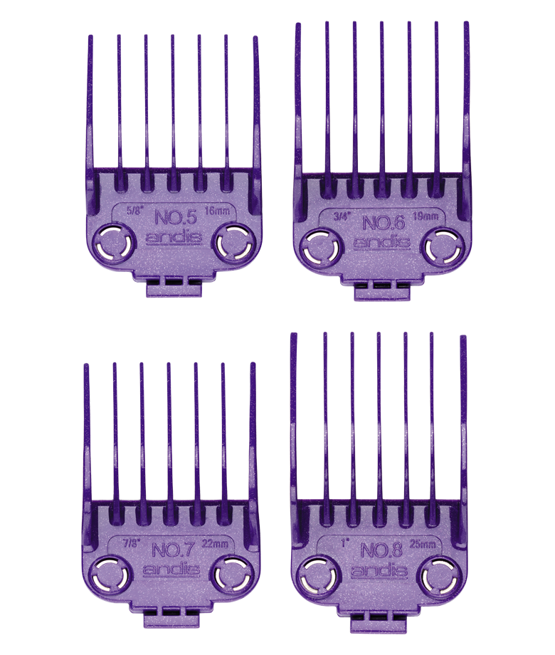 Purpose Mix up the lengths to achieve all sorts of styles with Andis Clipper Magnetic Comb Set 4 pack Why it works Quicker than changing blades whenever you want a different length, the Andis Magnetic Combs are an easy way of achieving multiple styles out of the same Andis Clipper. The strong magnets last longer than clips that can bend or break. Simply click on to your clipper and you're ready to go.Fits: MBA, MBX, MC-2, MA-1, RACA, PM-1, PM-2, PM-3, PM-4, US-1Ā