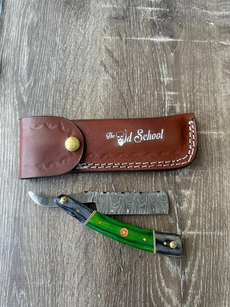 The Old School Damascus Steel Vintage Straight Razor Cut Throat Barber Salon Shaving Razor Vintage Wood with Leather Case